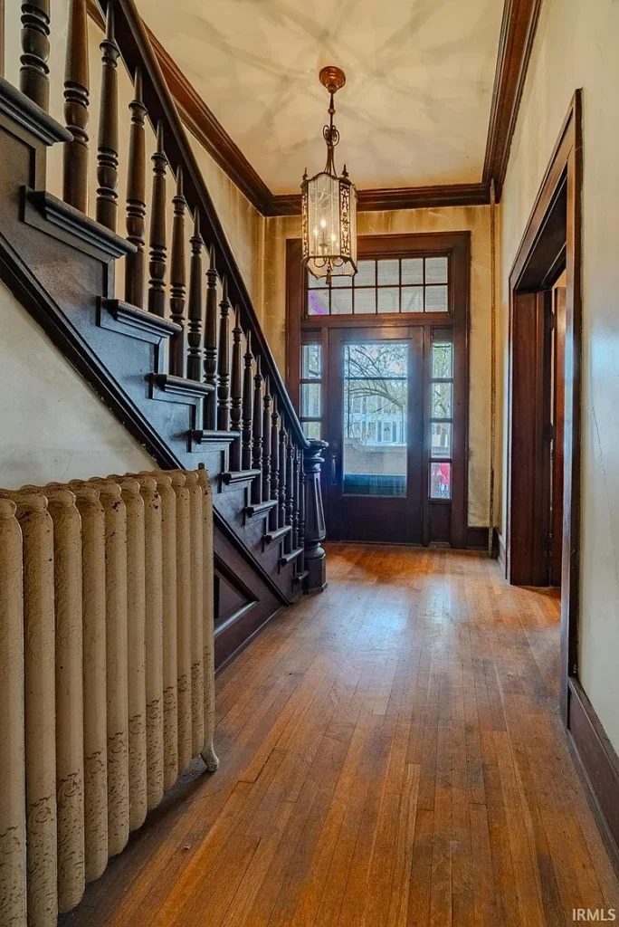 The home’s charm begins immediately upon entry with an impressive, beautifully crafted staircase, highlighted by a stunning brass chandelier—a timeless focal point that sets the tone for the craftsmanship found throughout the home. Original woodwork, tall ceilings, and period details give the property a sense of warmth and grandeur that is difficult to replicate in modern construction.